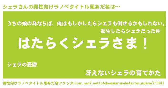 | 胡散臭い通販商品みたいなあだ名 | 『幸せが訪れる高級そうな壺…その名も「シェラ」』 |