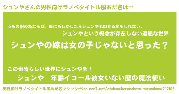 | 女子向けラノベタイトル風あだ名 | 『シュンや様がみてる』 |