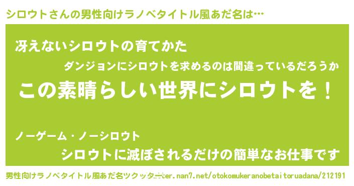 | ヒーロー風カッコイイあだ名 | 『仮面シロダー』『銀牙騎士シロ』 |