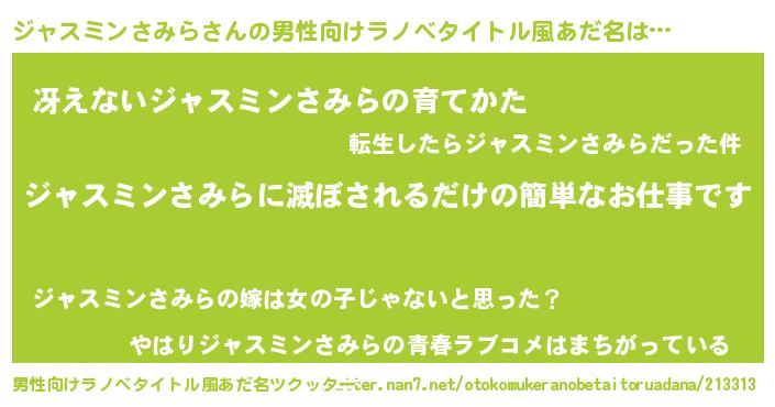 | 胡散臭い通販商品みたいなあだ名 | 『世界が平和になる高級そうな壺…その名も「ジャスミンさみら」』 |