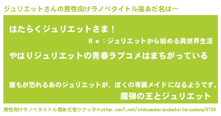 ヘコむあだ名 | 『豆乳』『ジュリエット(笑)』 |