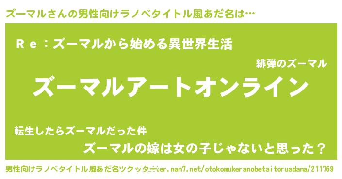 | 意味不明あだ名 | 『ペロリンズーマル』『自称ズーマル』 |