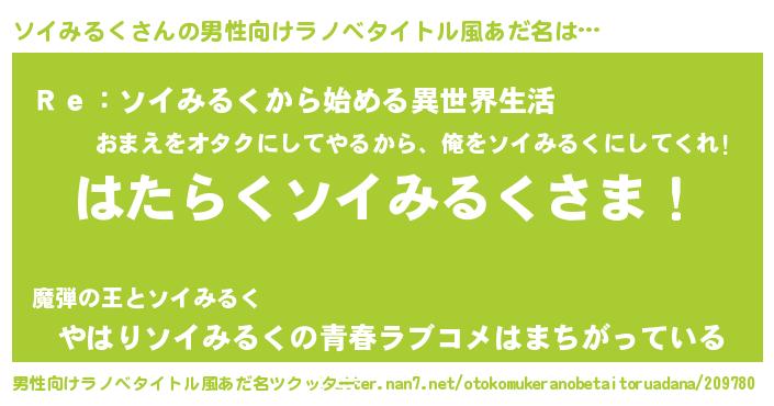 | 肩書あだ名 | 『ソイみるくマネージャー』 |