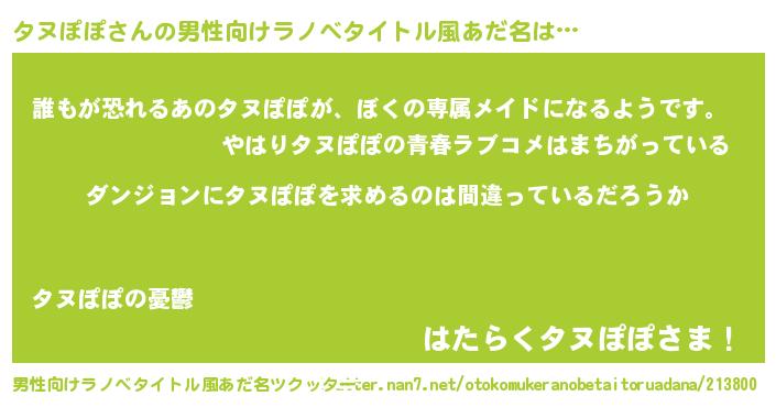 | 女子向けラノベタイトル風あだ名 | 『タヌぽぽは平凡を望む』 |