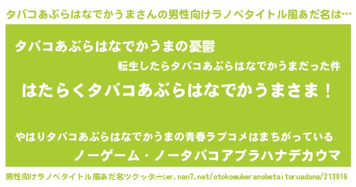 タバコあぶらはなでかうまさんの男性向けラノベタイトル風あだ名をツクッター!