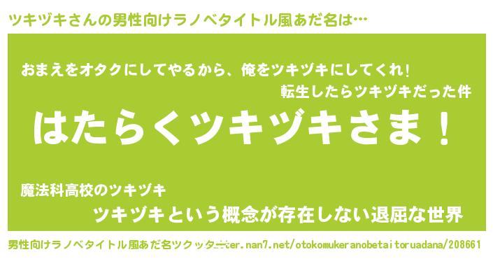| ヘコむあだ名 | 『ツキヅキ(震え声)』『ツキもー』 |