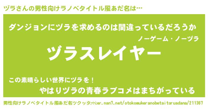 | 胡散臭い通販商品みたいなあだ名 | 『信頼と実績のサプリメント…その名も「ヅラ」』 |