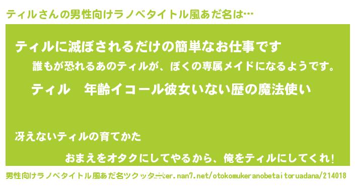 | ヒーロー風カッコイイあだ名 | 『慈愛の使者ティル』『ネオティル』 |