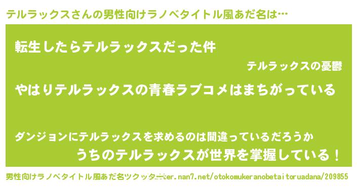 | 女子向けラノベタイトル風あだ名 | 『テルラックスの雑貨屋さん』 |