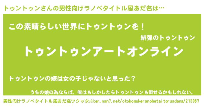 トゥントゥンさんの男性向けラノベタイトル風あだ名をツクッター!
