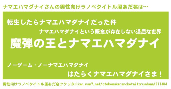 | ポケモン風あだ名 | 『ナーマイ』『ナマキング』 |