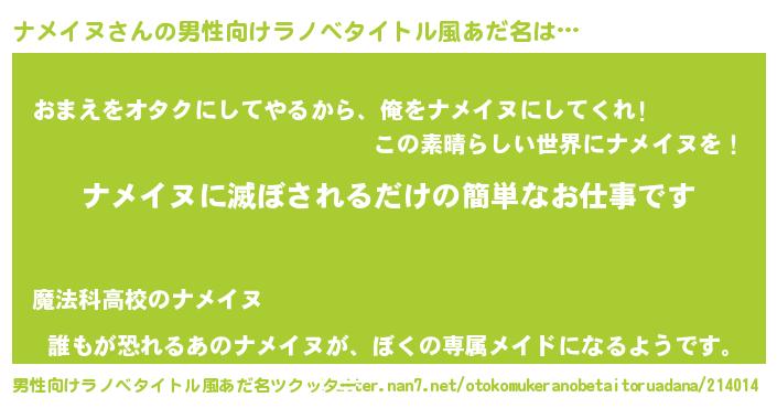| ヘコむあだ名 | 『ナメイヌ(遠い目)』『ナメっぺ』 |