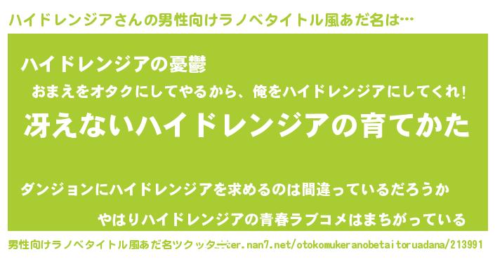 | 胡散臭い通販商品みたいなあだ名 | 『モテモテ間違いなし水晶球…その名も「ハイドレンジア」』 |