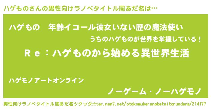 | 女子向けラノベタイトル風あだ名 | 『闇のハゲもの』『死神ハゲものの再婚』 |