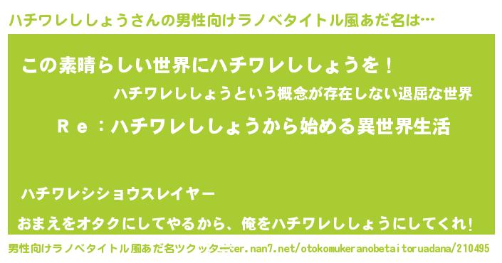 | 意味不明あだ名 | 『自称ハチワレししょう』 |