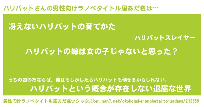 | 意味不明あだ名 | 『とにかく怪しいハリバット』 |