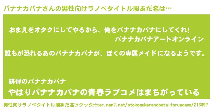 | 胡散臭い通販商品みたいなあだ名 | 『前代未聞の健康食品…その名も「バナナカバナ」』 |