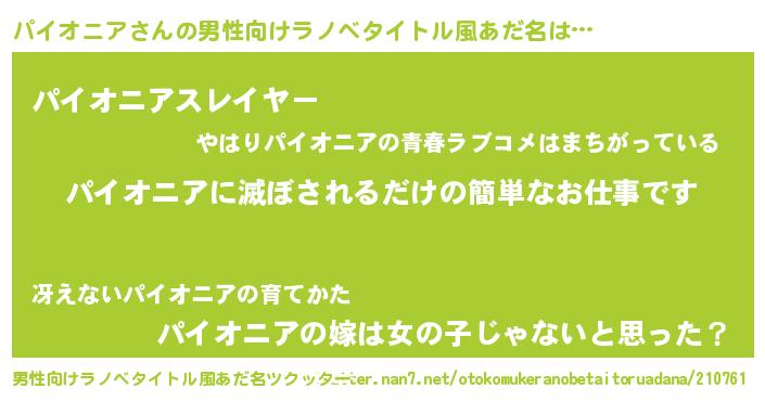 | 女子向けラノベタイトル風あだ名 | 『横柄パイオニアと宰相陛下』 |