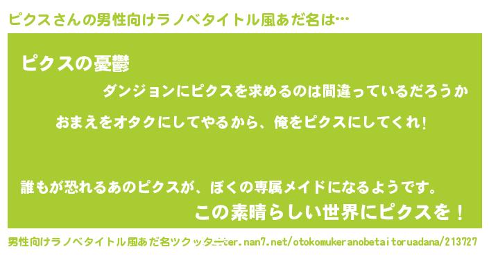 | 女子向けラノベタイトル風あだ名 | 『ピクス恋絵巻』『ピクス姫と円卓の騎士』 |