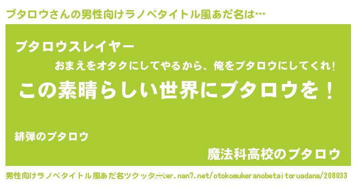 | 意味不明あだ名 | 『住所不定無職ブタロウ(86歳)』 |
