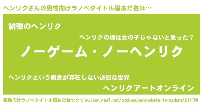 | 女子向けラノベタイトル風あだ名 | 『死神ヘンリクの再婚』 |