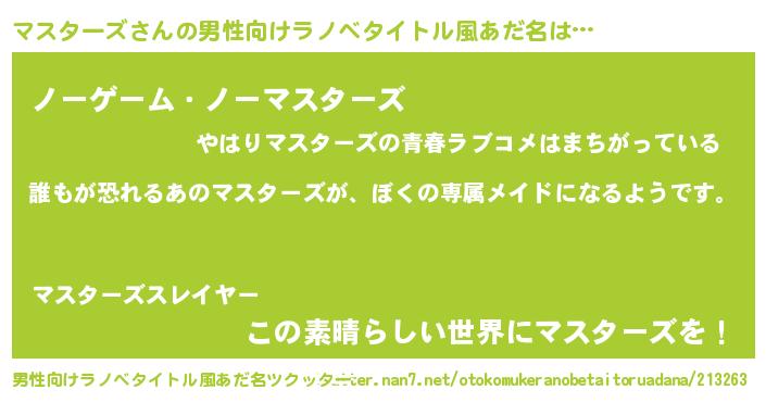 | ヘコむあだ名 | 『マスターズ(笑)』『酢こんぶ』 |