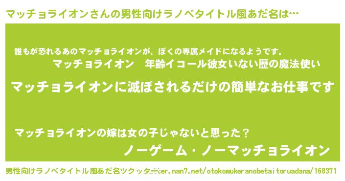 | 胡散臭い通販商品みたいなあだ名 | 『前代未聞の健康食品…その名も「マッチョライオン」』 |