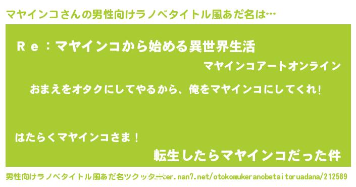 マヤインコさんの男性向けラノベタイトル風あだ名をツクッター!