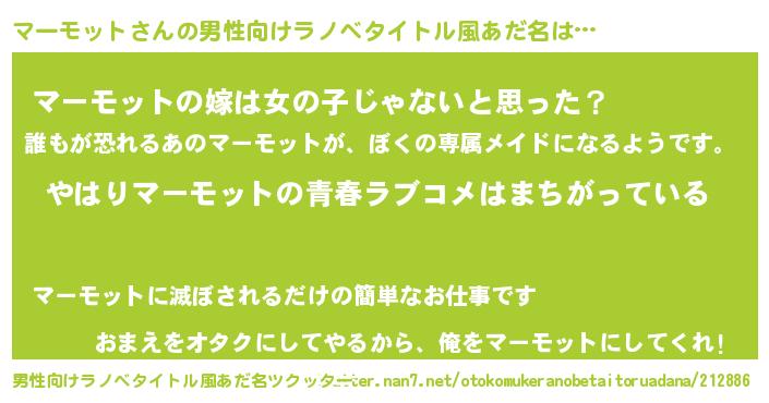 | 女子向けラノベタイトル風あだ名 | 『マーモットの雑貨屋さん』 |