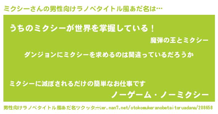 | 女子向けラノベタイトル風あだ名 | 『ミクシーは平凡を望む』 |