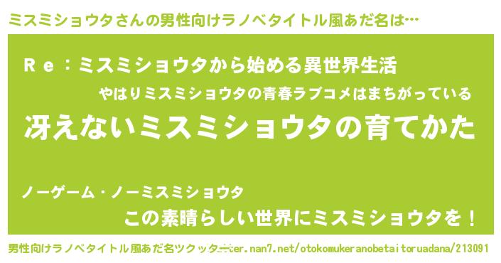 | 意味不明あだ名 | 『自称ミスミショウタ』 |