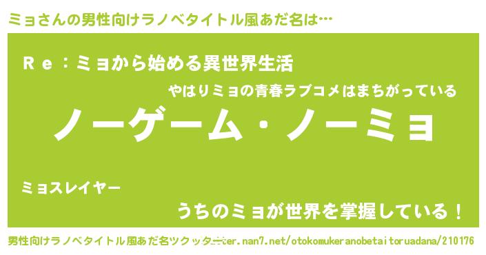 | 意味不明あだ名 | 『眠気覚ましガムミョ味』『自称ミョ』 |