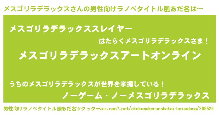 | 胡散臭い通販商品みたいなあだ名 | 『億万長者になれるブレスレット…その名も「メスゴリラデラックス」』 |