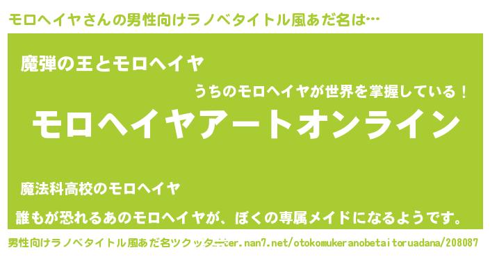| 女子向けラノベタイトル風あだ名 | 『モロヘイヤ姫と円卓の騎士』 |