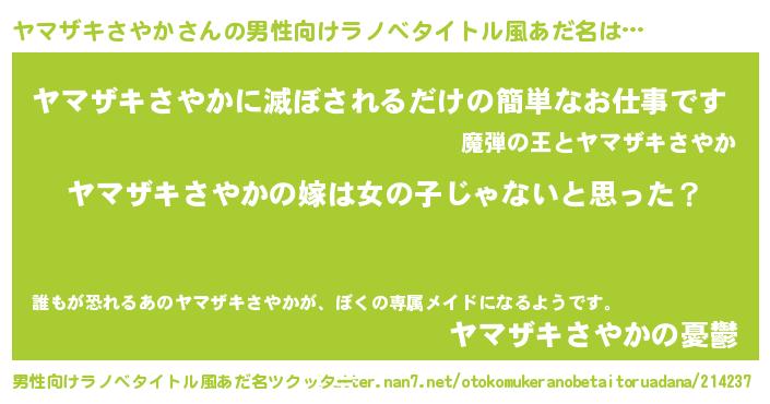 | 胡散臭い通販商品みたいなあだ名 | 『全米が絶賛したサプリメント…その名も「ヤマザキさやか」』 |