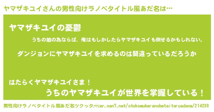 | ポケモン風あだ名 | 『ヒヤマザキユイ』『ヤマチュウ』 |