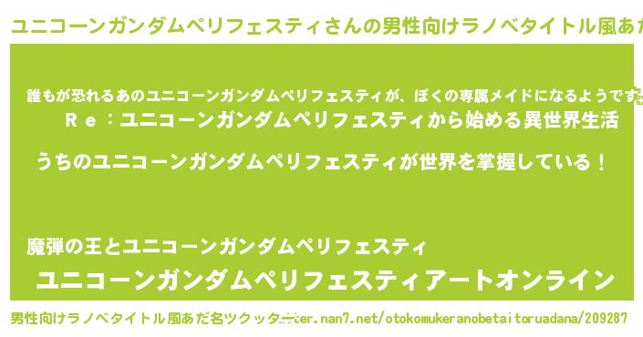 | 意味不明あだ名 | 『永久保存ユニコーンガンダムペリフェスティ』 |