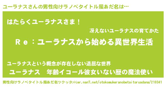 ユーラナスさんの男性向けラノベタイトル風あだ名をツクッター!