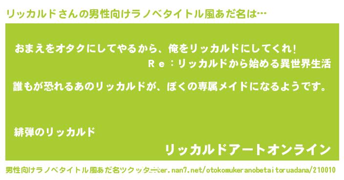 | 意味不明あだ名 | 『永久保存リッカルド』『自称リッカルド』 |