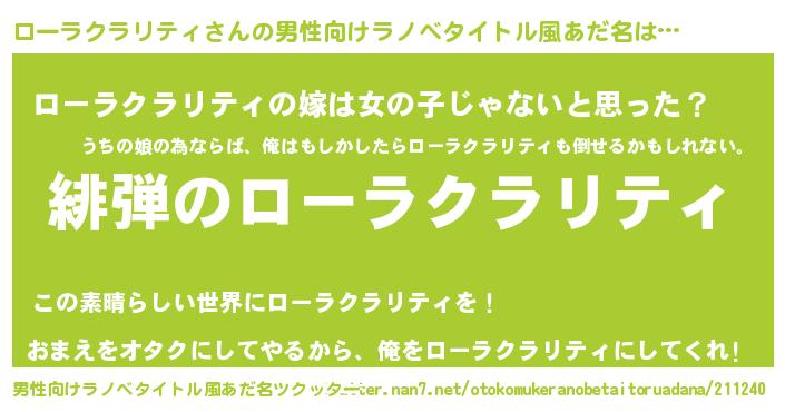 | 胡散臭い通販商品みたいなあだ名 | 『信頼と実績のネックレス…その名も「ローラクラリティ」』 |