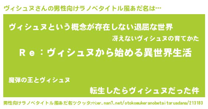 | 意味不明あだ名 | 『自称ヴィシュヌ』『永久保存ヴィシュヌ』 |