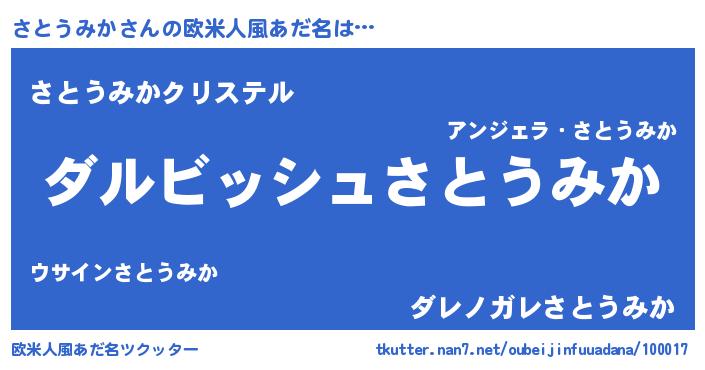 | 胡散臭い通販商品みたいなあだ名 | 『来世でも幸せになれる健康食品…その名も「さとうみか」』 |