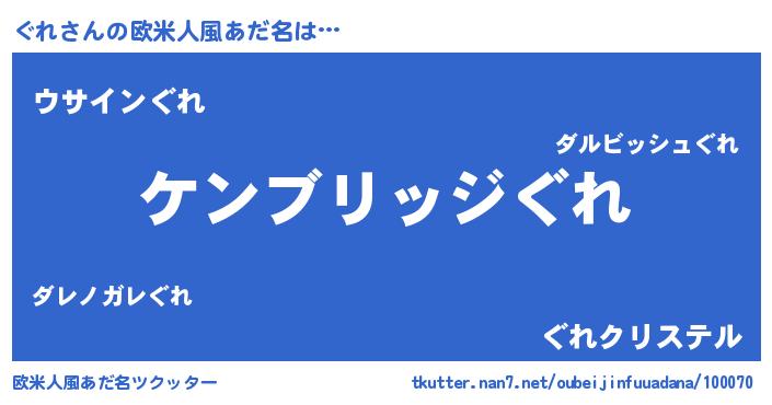 | 男性向けラノベタイトル風あだ名 | 『Re:ぐれから始める異世界生活』 |