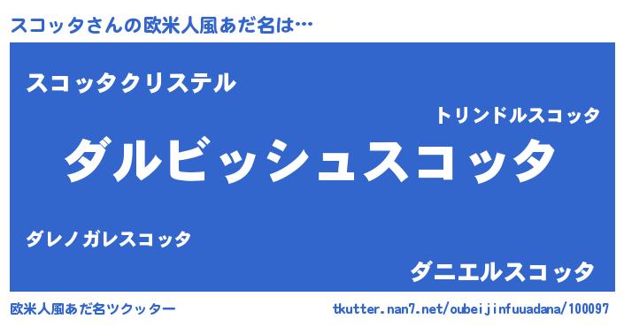 | ヒーロー風カッコイイあだ名 | 『ネオスコッタ』『ウルトラスコッタマン』 |