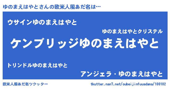 | 女子向けラノベタイトル風あだ名 | 『ゆのまえはやとなんてお断りですっ。』 |