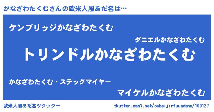 | 男性向けラノベタイトル風あだ名 | 『転生したらかなざわたくむだった件』 |