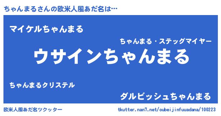 | 女子向けラノベタイトル風あだ名 | 『ちゃんまる様がみてる』 |