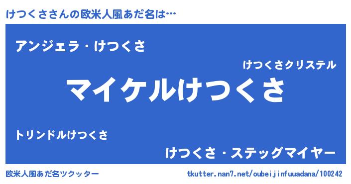 | 男性向けラノベタイトル風あだ名 | 『けつくさの憂鬱』『ケツクサスレイヤー』 |