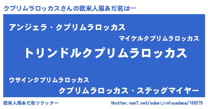 | 男性向けラノベタイトル風あだ名 | 『クプリムラロッカススレイヤー』 |