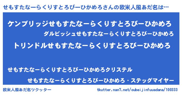 | 肩書あだ名 | 『せもすたなーらくりすとろびーひかめろ少将』 |